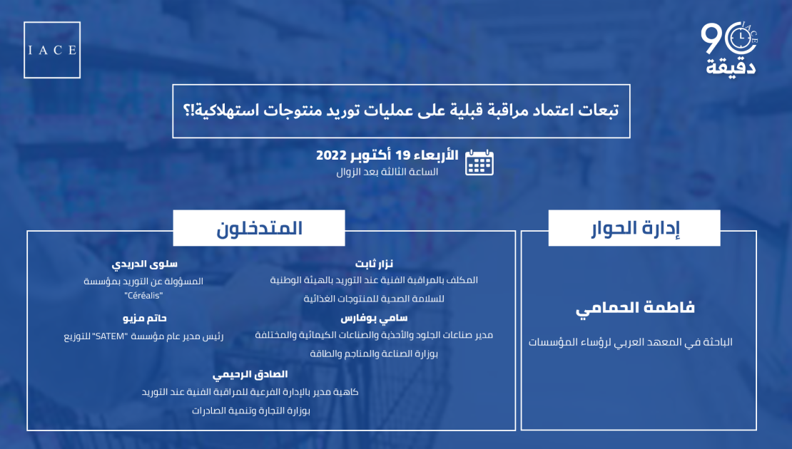 برنامج 90 دقيقة ليوم الأربعاء 19 أكتوبر 2022، بعنوان“تبعات اعتماد مراقبة قبلية على عمليات توريد منتوجات استهلاكية؟!