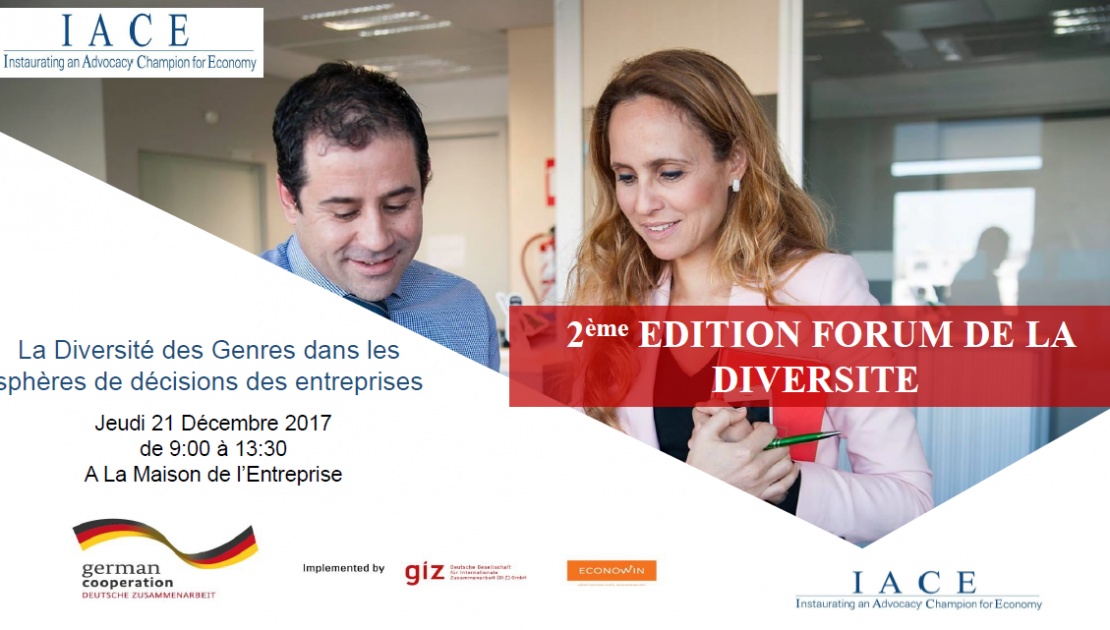 « La Diversité des Genres dans les Sphères de Décisions des Entreprises » est le thème de la 2ème édition du Forum de la Diversité organisé par l’IACE en partenariat avec EconoWin*. Le forum aura lieu ce Jeudi 21 Décembre 2017 de 9h à 13h30, à La Maison de l’Entreprise.
